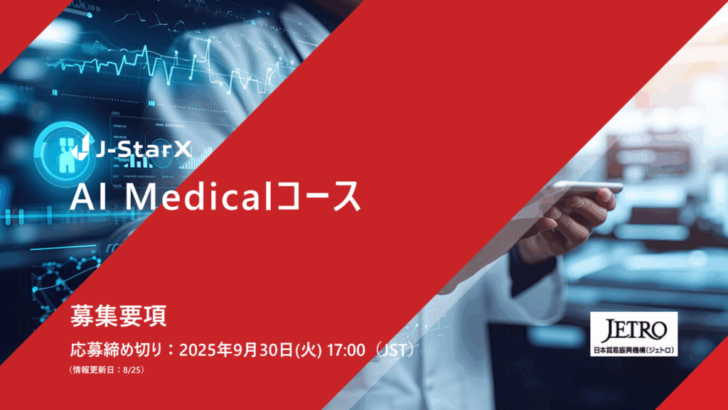 海外派遣プログラム「J-StarX」(J-StarX AI Medicalコース) 参加スタートアップ募集中! 【9/30 17:00 締切 】