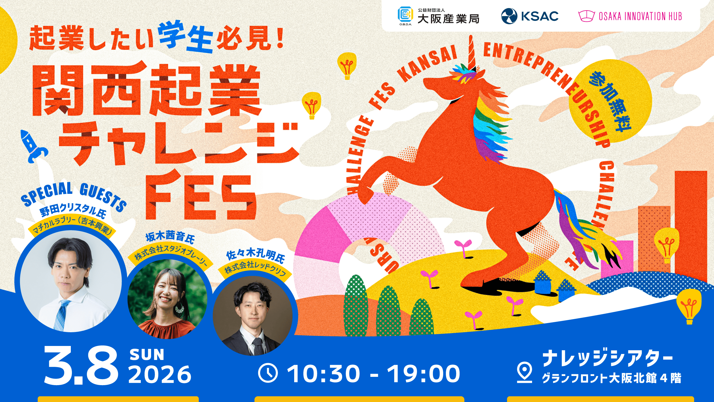 | 主催 | 公益財団法人大阪産業局、関西スタートアップアカデミア・コアリション(KSAC) |